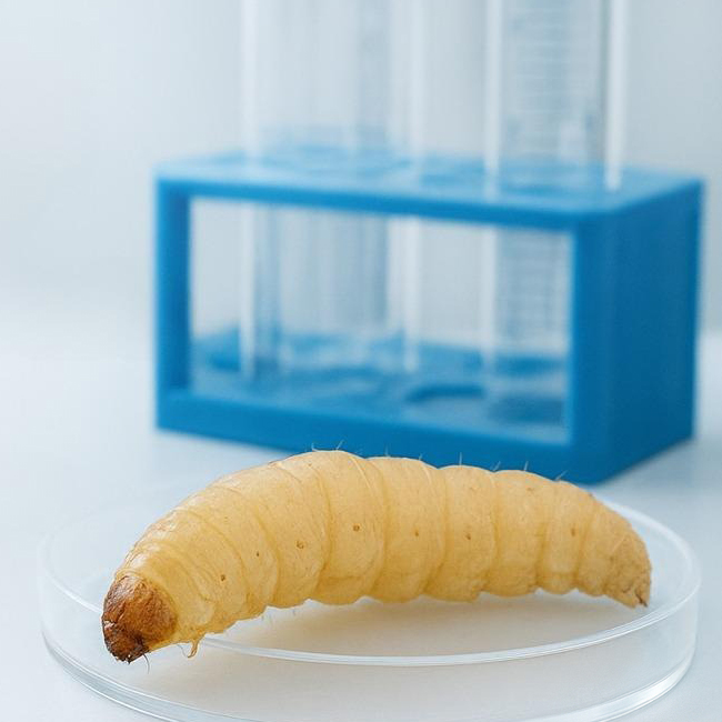 🔬 Larvas de Galleria mellonella para investigación científica.